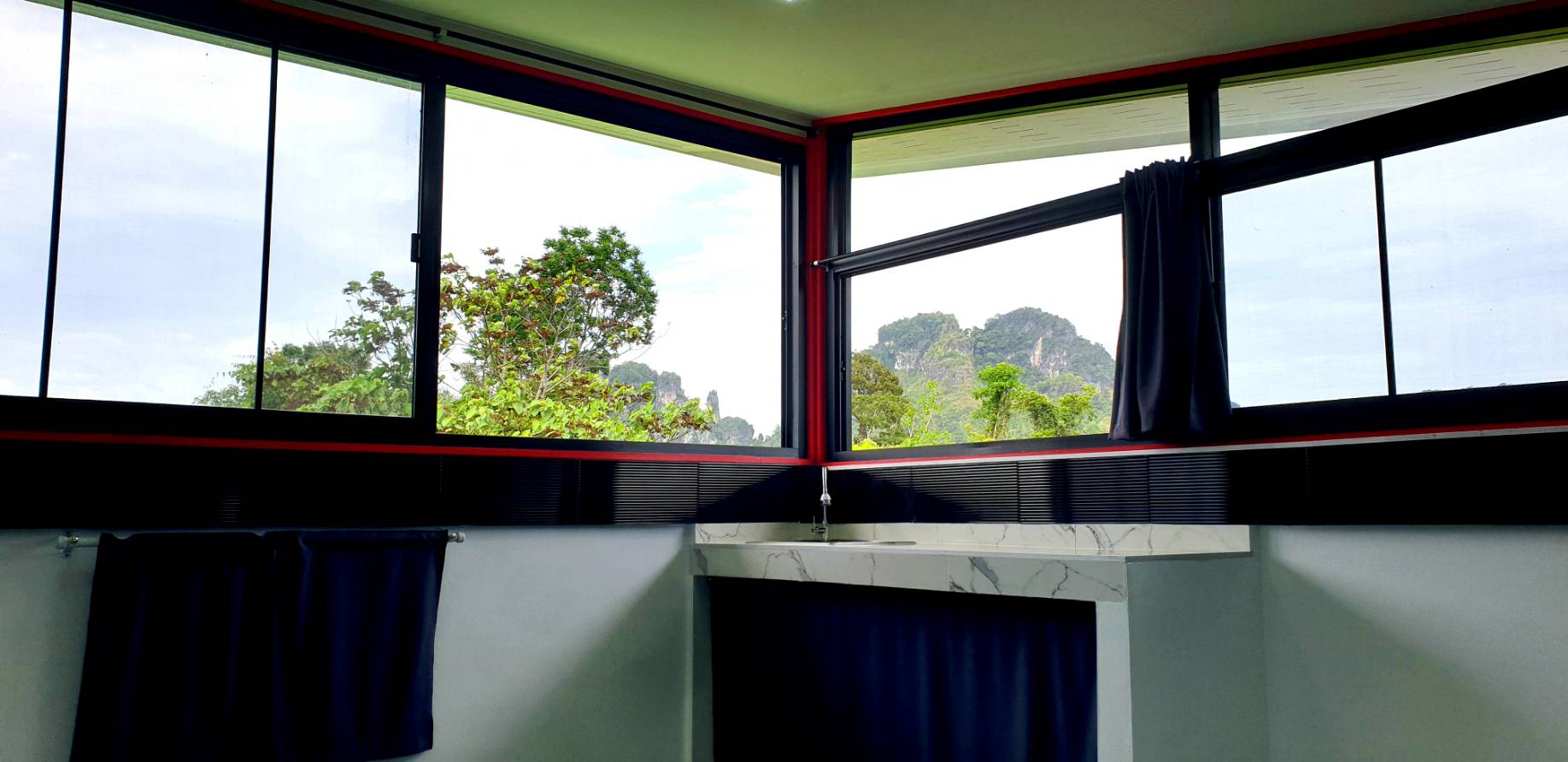 Ready to move in from March 2025. This new house come with high quality finishing. Concrete equipped kitchen with washing machine and bathroom. 1 large bedrooms 1 bathroom, 2 aircon, hot water, rain shower, two work station and a big terrace with private covered parking. Price negotiable. Rent directly from landlord. Free wifi 1Gbps. Mountain view in a quite green area at 5km from the beach.